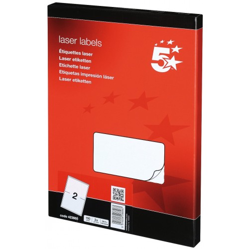 5 Star Addressing Labels Laser 2 per Sheet 199.6x143.5mm White